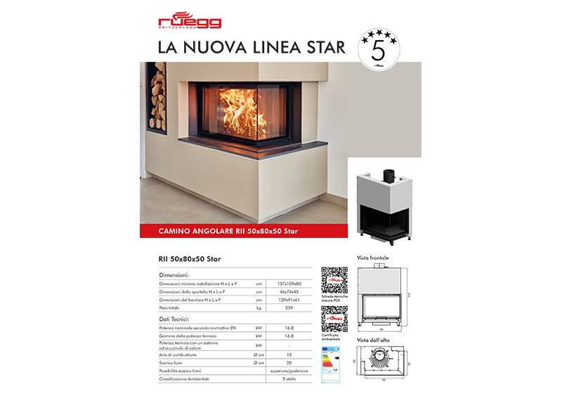 Rüegg Serie KUn focolare Rüegg a tutti gli effetti con un’accurata porta a battente per permettere una moderna installazione a filo parete, per ogni budget! Camino Rüegg KII 50x80x50
